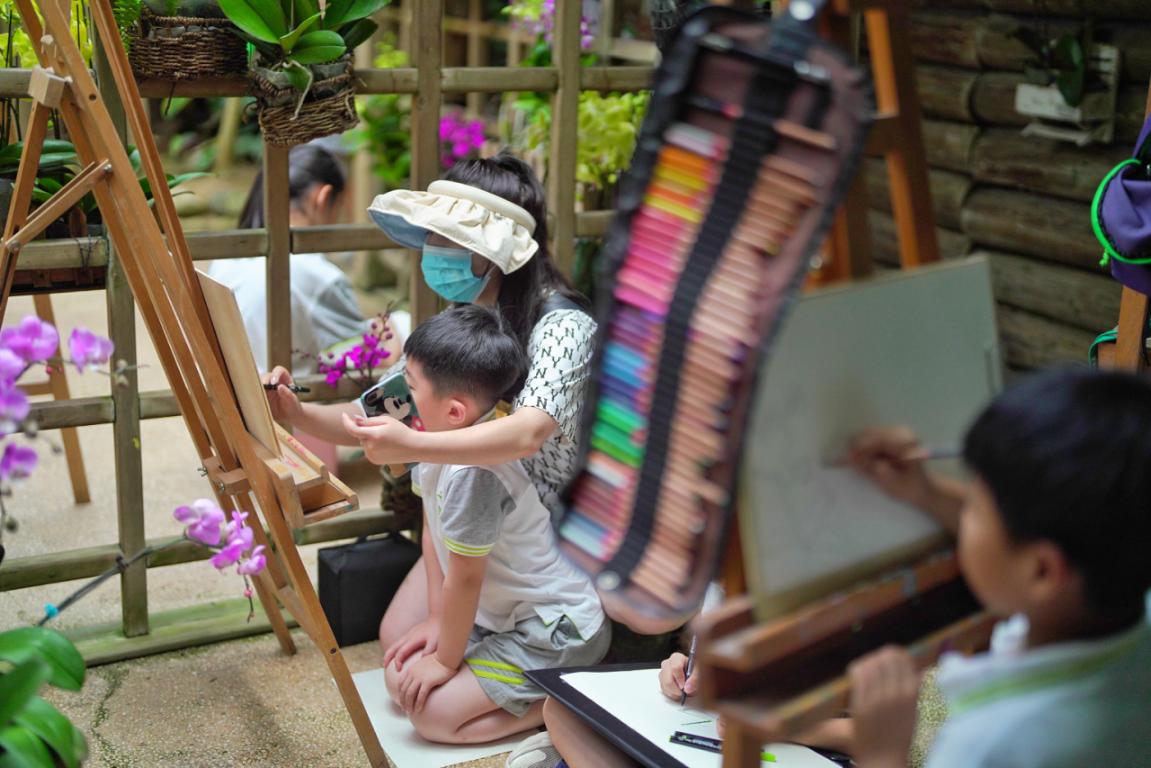 在活动的植物笔记创作环节,来自两江新区星光学校的学生们在老师的带领下近距离感受了南山植物园这座植物王国的奇妙。