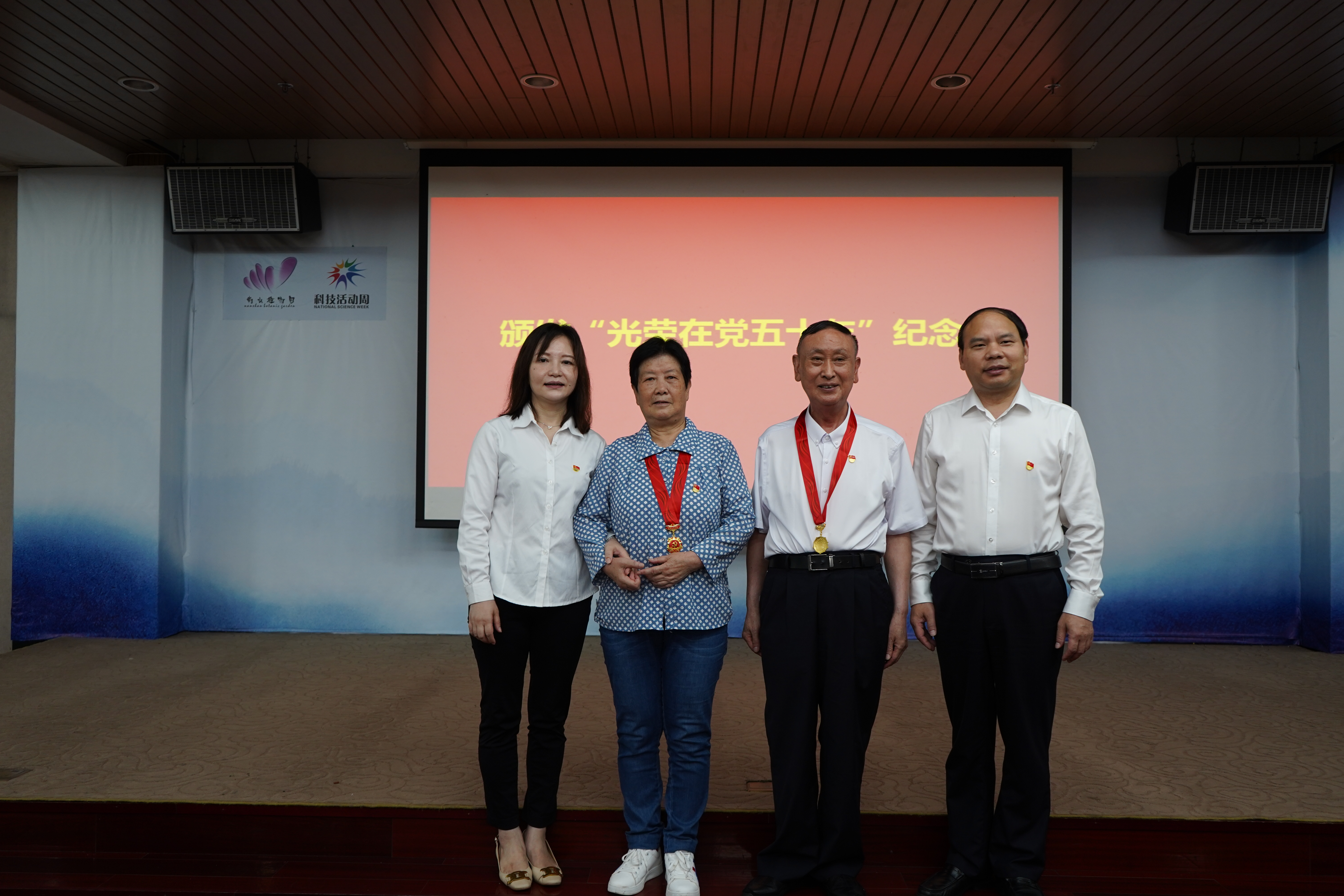 庆祝会上,班子为优秀党员、优秀党务工作者颁奖,为两位老党员颁发光荣在党50年纪念奖章。