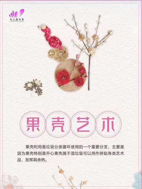 同时,游客们还可以带上小朋友们在10月1日到5日期间来植物园参加果壳妙用(废物利用)手工活动,在变废为宝的同时普及了绿色生态可持续发展的理念。开心果是人们常食的食品之一,开心果壳作为湿垃圾可以被循环利用,近年来不少艺术家与创意大师纷纷利用开心果壳做出不少艺术品,本次活动将介绍果壳艺术品在家居装饰和人们日常生活中的作用,并让广大市民在科研人员带领下尝试自己制作小工艺品,践行绿色环保理念。